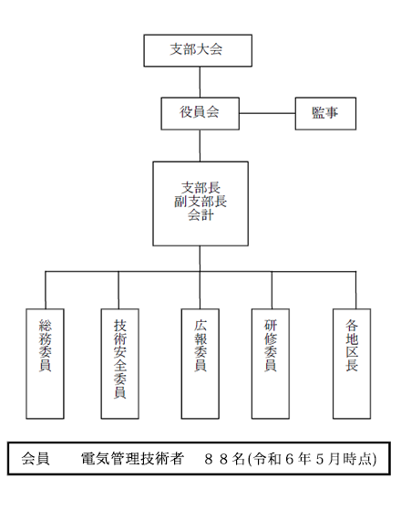 支部会員は電気技術者として豊富な経験と多様な資格を所有しており、電気設備の保安管理業務と共に省エネルギーや太陽光発電等の新エネルギーのコンサルにも応えています。 更には、最新の技術に乗り遅れないよう各種の研修会を開催し日々自己・相互研讃に励んでいます。
